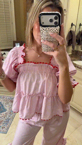 💟Celebrate love in style with the Valentine Ruffle Puff Sleeve Pajamas Set. Crafted from soft fabric, this chic set features wavy ruffled details and a relaxed fit, making your nights cozy and elegant. Buy 2 for free shipping!