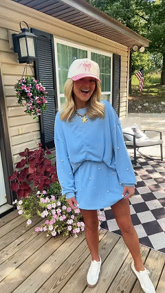 Elevate your wardrobe with this Pearl Embellished Long Sleeve Crop Sweatshirt Skirt Two-Piece Set. Crafted for style and comfort, the elegant pearl accents add a sophisticated touch.
