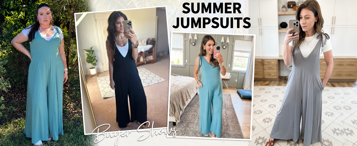 - [Design Highlights] Tie-shoulder design allows you to decided the style of this wide leg jumpsuits, V-shaped adds a unique flair to this casual jumpsuit.