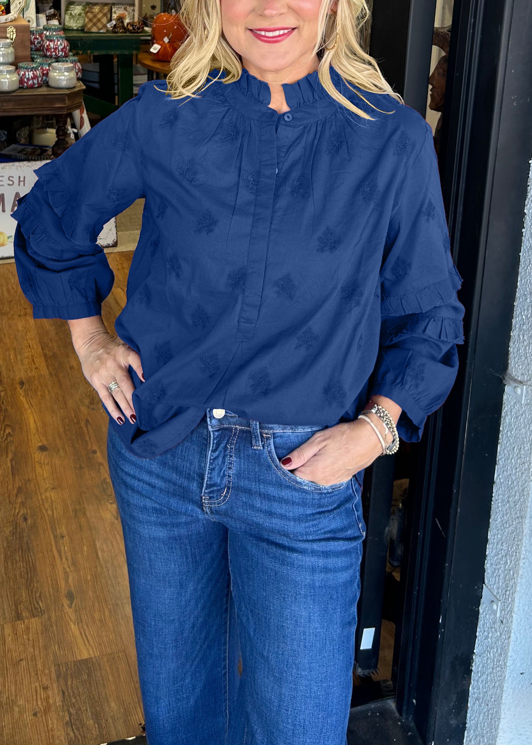Introducing the Strawberry Blouse: the perfect maroon color for your wardrobe. Add a touch of sweet sophistication with this versatile top that pairs well with jeans or a skirt. Cheers to effortless style and playful charm!